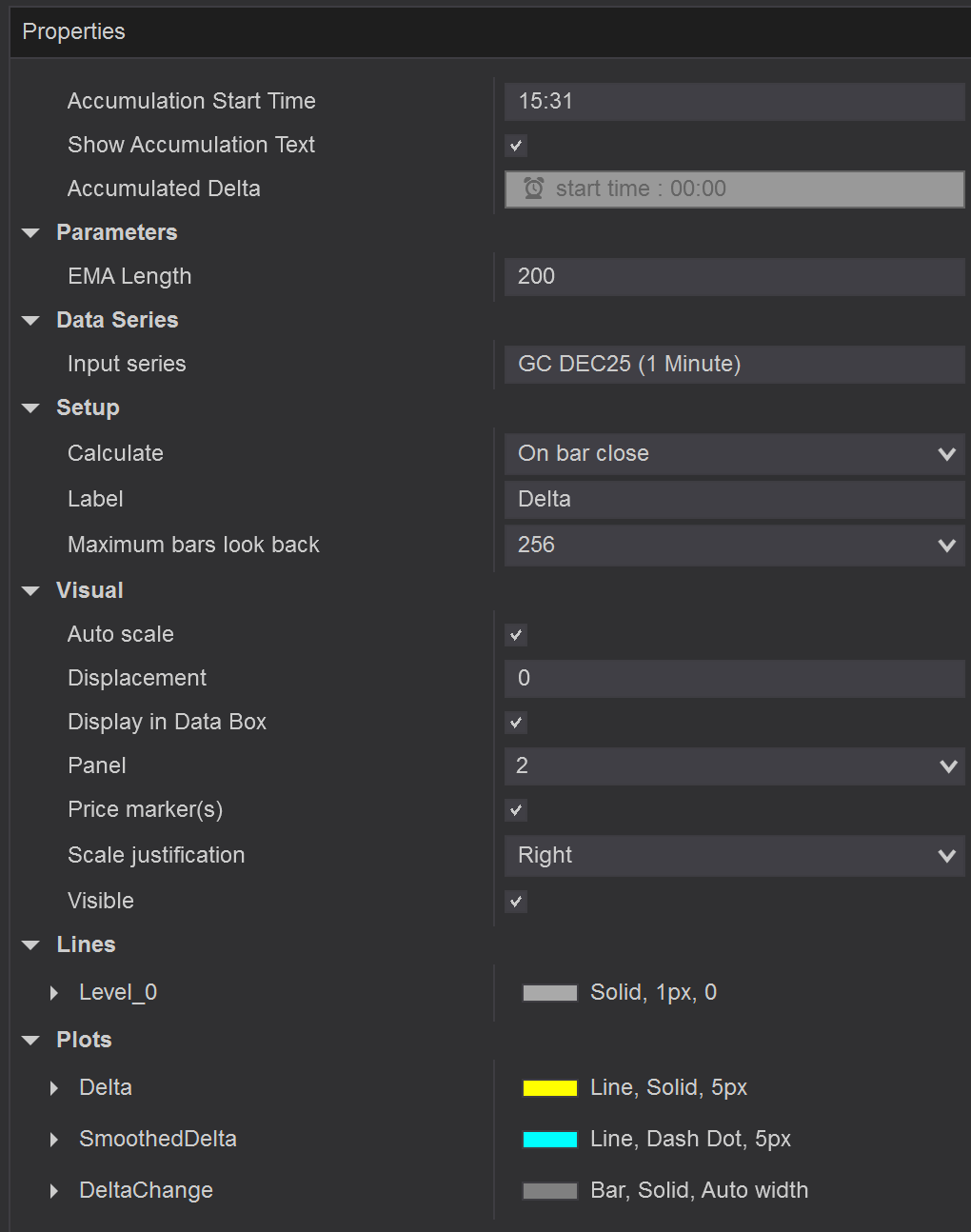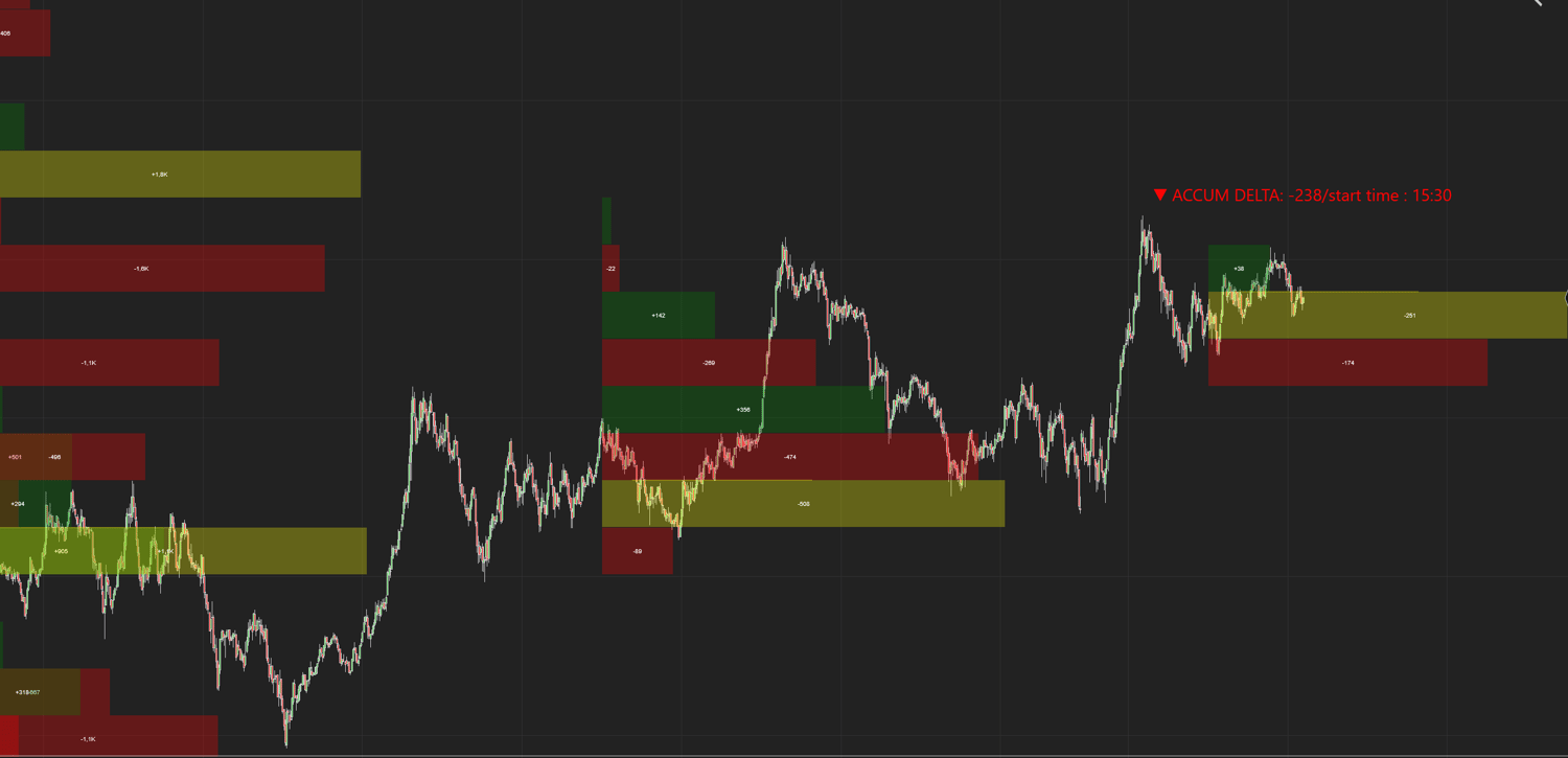 🧾 Accumulation Delta:Displays the total net executed orders from a customizable start time (beginning of the day or market open), updated in real time. Instantly see whether buyers or sellers dominate, highlighted in green or red.
